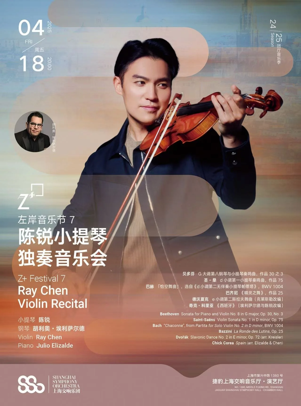 ![]()  Ray Chen Violin RecitalApril 18, 2024 Friday Jaguar Shanghai Symphony Hall – Concert Hall